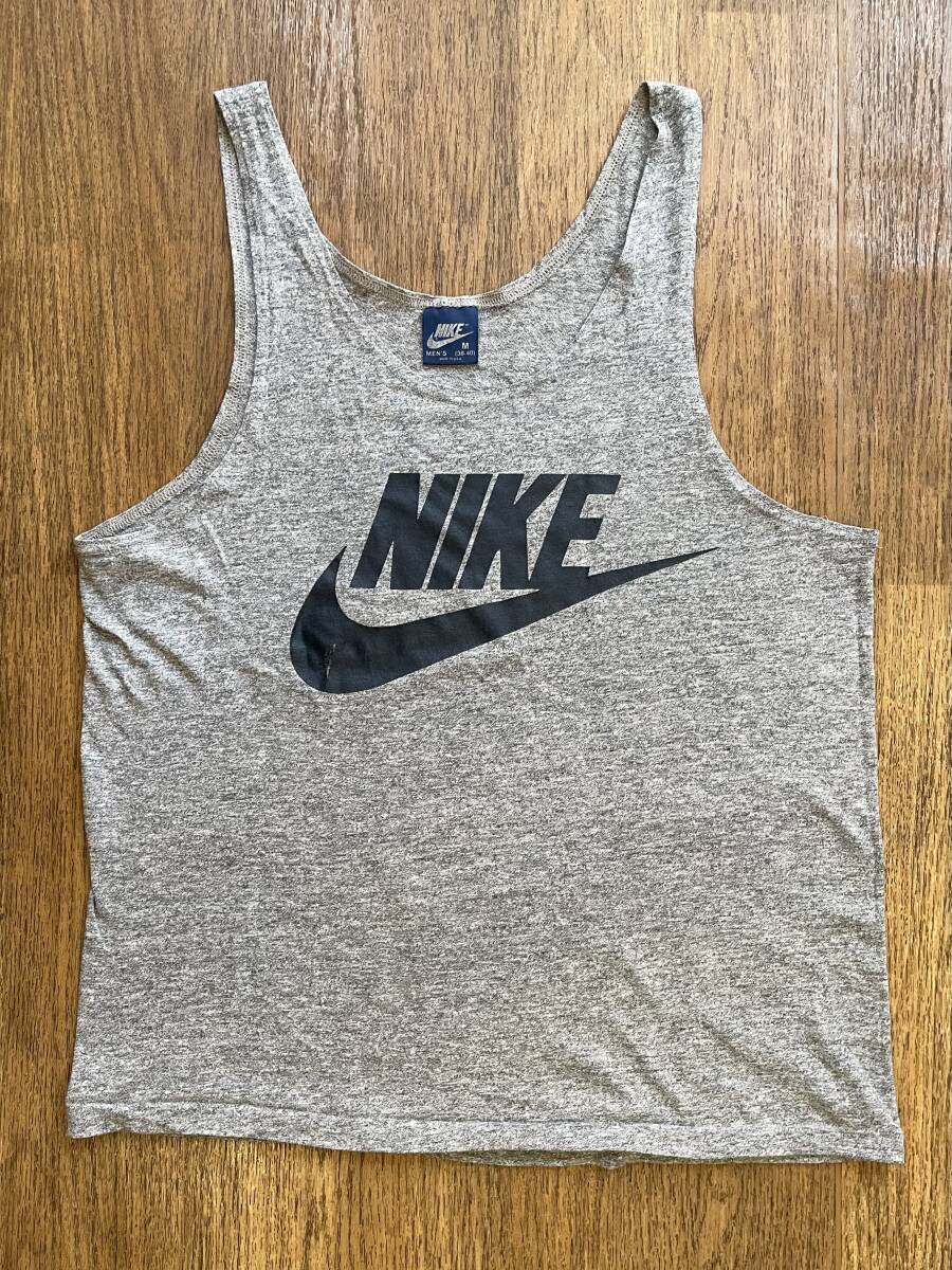 > 80s USA製 紺タグ NIKE ナイキ タンクトップ グレー ネイビー レア 霜降りボディ ヴィンテージ 古着 1980年 米国製 アメリカ製 MADE IN USA