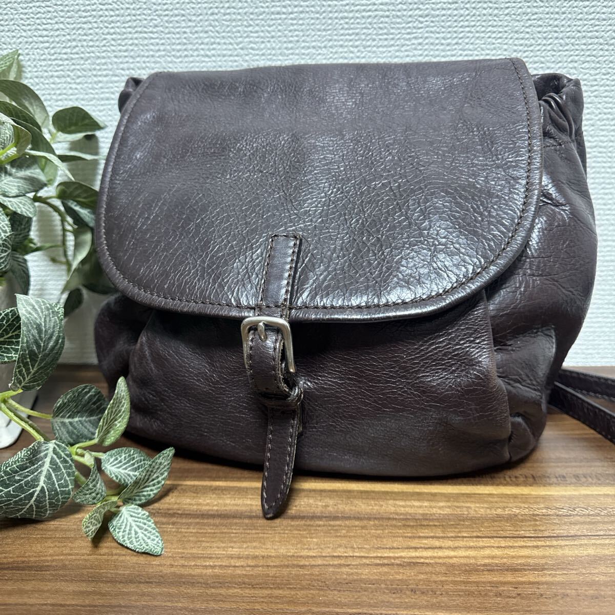 - ボーデッサン 本革 ブラウン レザーショルダーバッグ