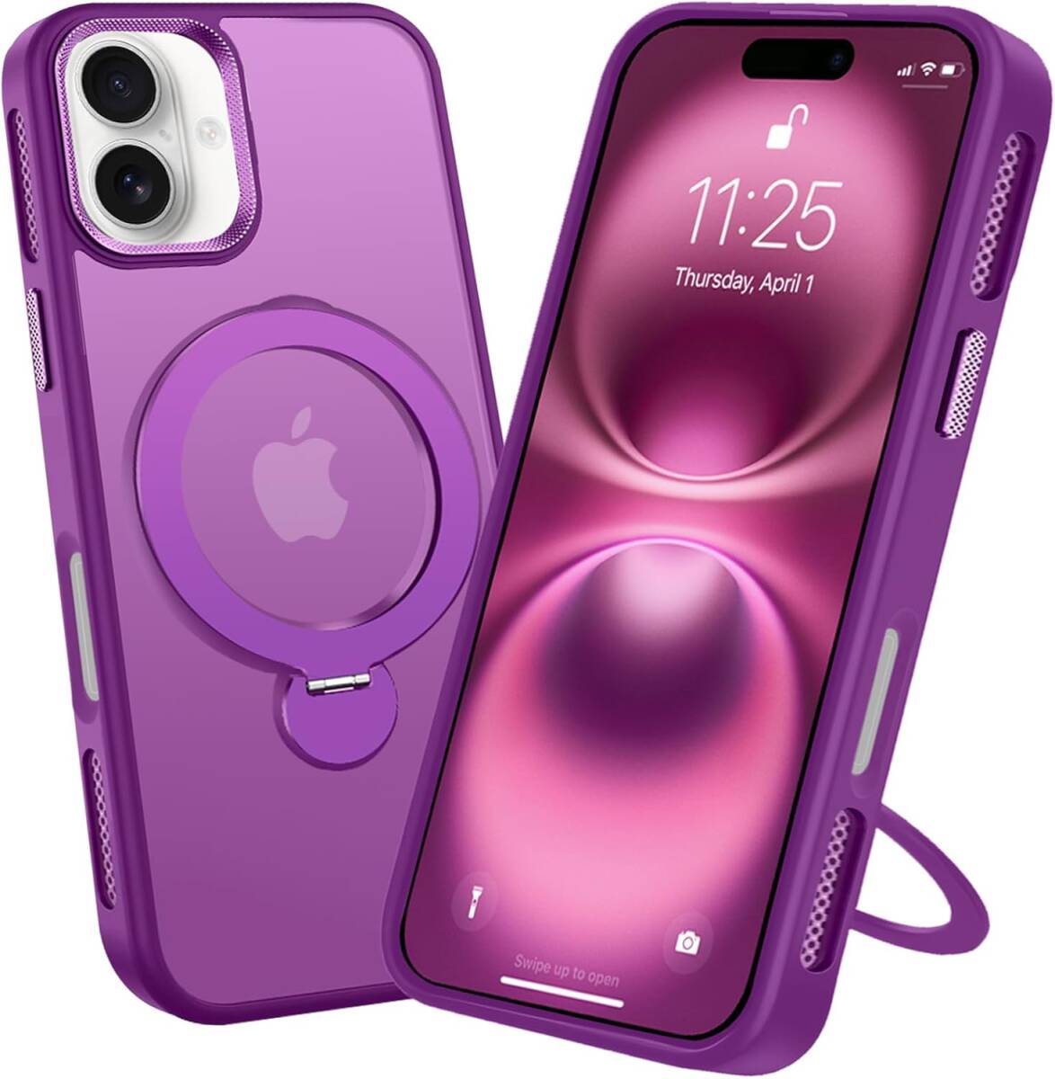 > LONEINTIAN iPhone16Plus ケース 360°回転スタンド MagSafe 耐衝撃 リング カバー 米軍MIL規格 リング付き タンド充電対応 (パープル)
