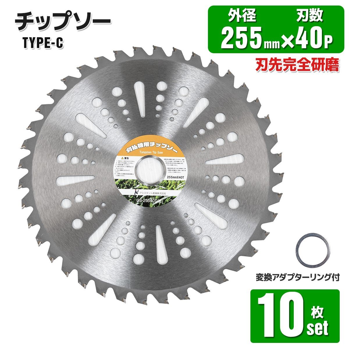 - ■送料無料■お買い得【10枚セット】草刈機用 チップソー 草刈機 草刈り機 替え刃 255mm×40P 替刃 40TC ●調整リング付き!