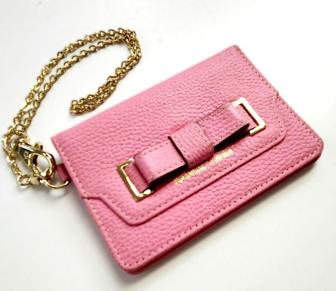 - サマンサタバサ リボン パスケース ピンク チェーン付き【送料無料】