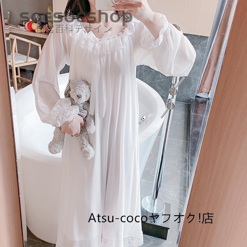 - 秋 春 綿 宮殿 プリンセス ネグリジェ ルームウエア 滑らか 肌さわり 心地良い リラックス ホワイト