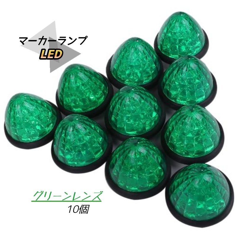 > マーカーランプ 緑発光 LED 24V 10個セット サイドマーカー トラック 外装 パーツ 車幅 側灯 シャーシ 丸型