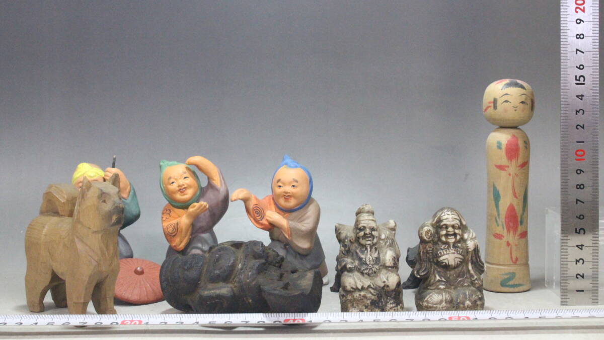 - 【文明館】土人形 木彫人形 こけし 恵比寿大黒 秋田犬 木彫り熊 まとめて 時代物 彫刻細工 タ11