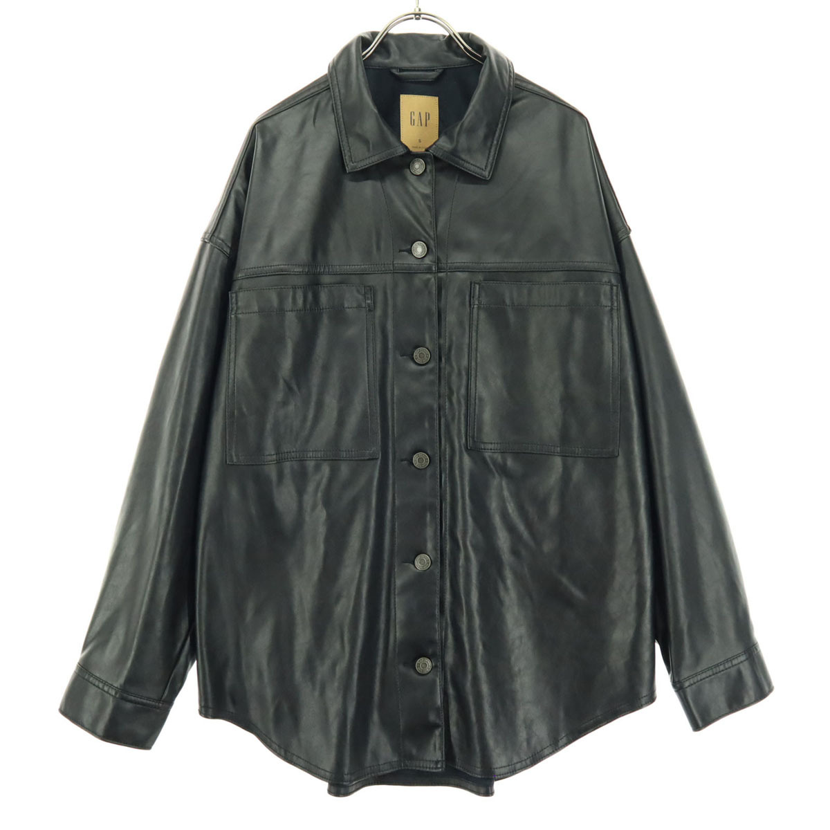 美品 GAP ギャップ 長袖 フェイクレザー シャツ S ブラック メンズ拍卖