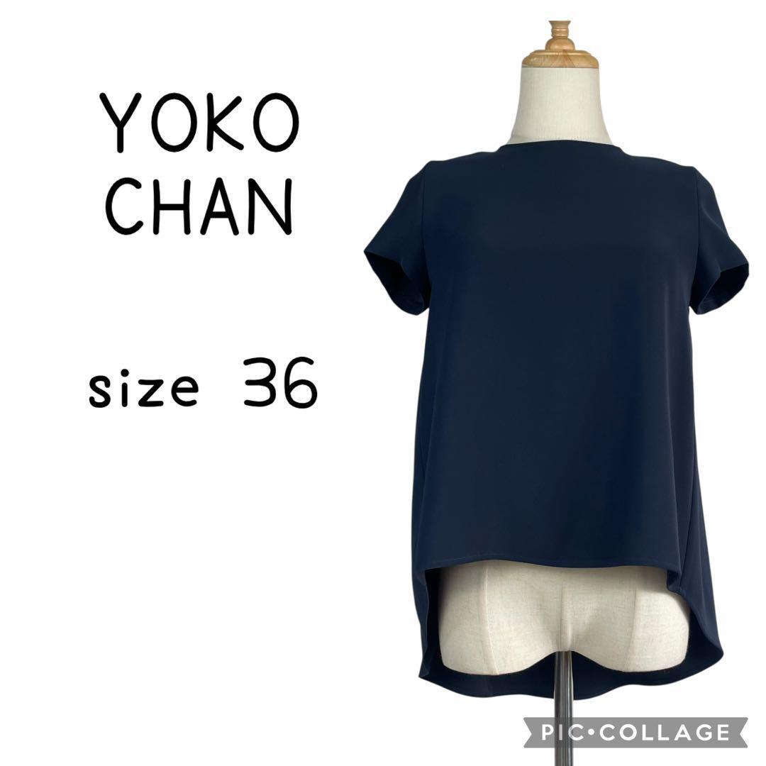 - 【美品】ヨーコチャン★バックギャザートップス ネイビー 近年 半袖ブラウス 36