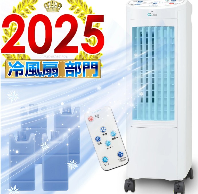 > 【静音・省エネ・5段階風力】日本メーカー製 ナノイオン搭載で抗菌・消臭・空気清浄! 冷風機 冷風扇 5~6回使用のみ美品 即決!