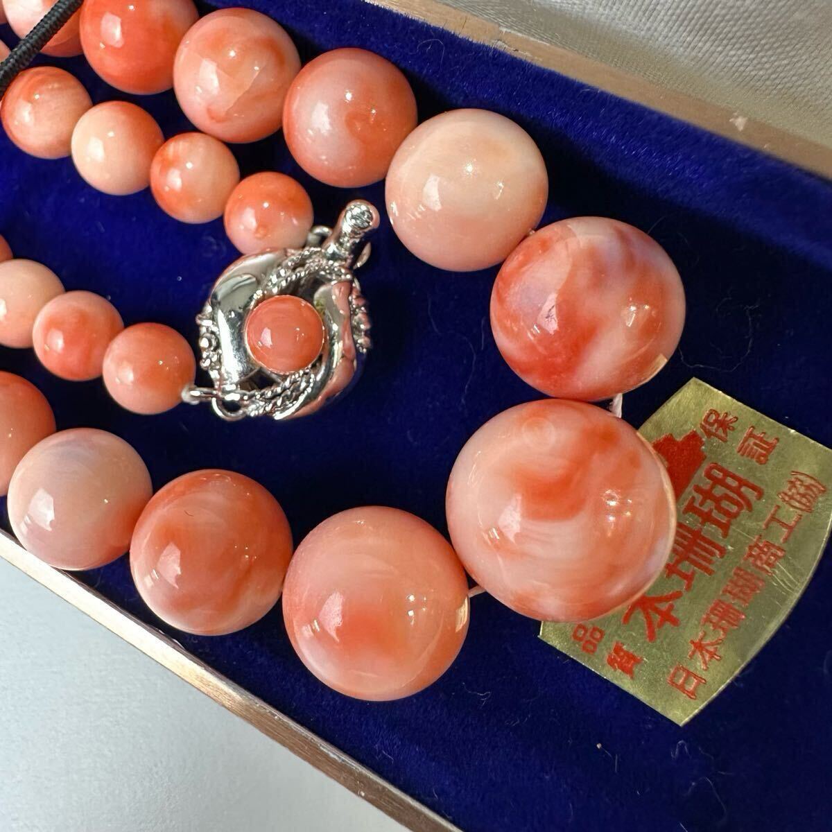 > 美品!! 日本珊瑚商工(協)天然 本珊瑚 ネックレス 約36.2g 長さ約42.5cm silver シルバー コーラル レディース