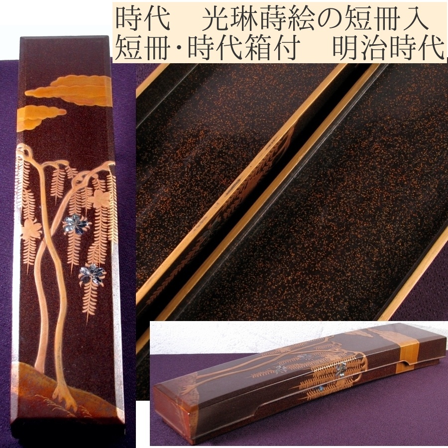 - 時代 光琳蒔絵の短冊入 幅:40cm 短冊・時代箱付 明治時代/25h032