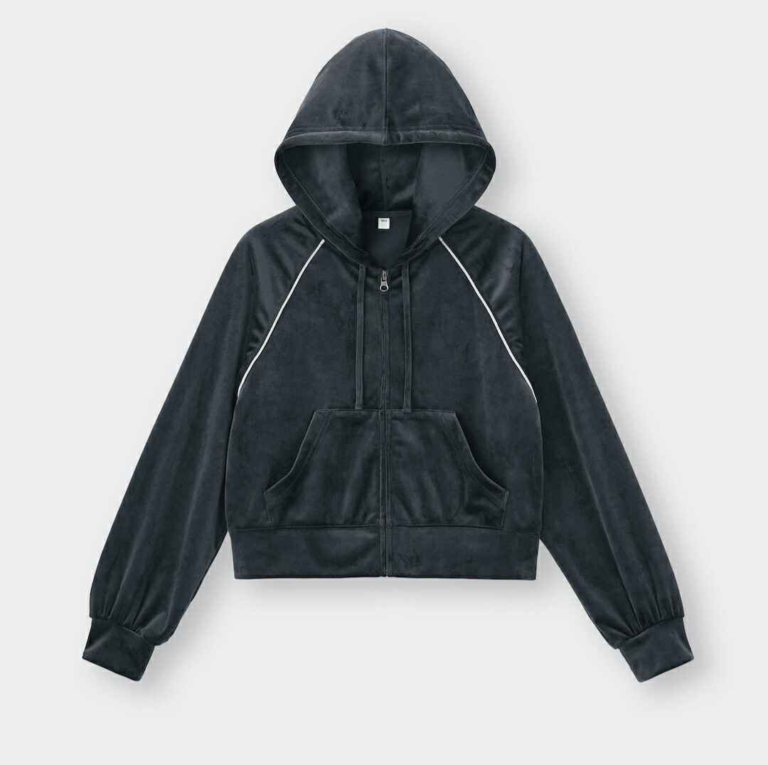 > Lサイズ 新品 ベロアフルジップパーカー ダークグレー 長袖 GU ベロアパーカー 送料無料