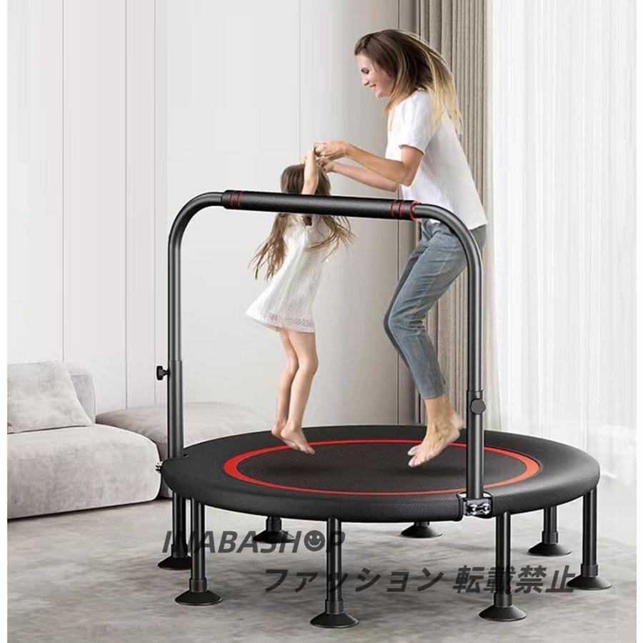 - トランポリン 室内 八本足子供大人兼用 手すり3段階調節 トレーニング エクササイズ あそび 家庭用 耐荷重300kg 折りたたみ式 収納便利