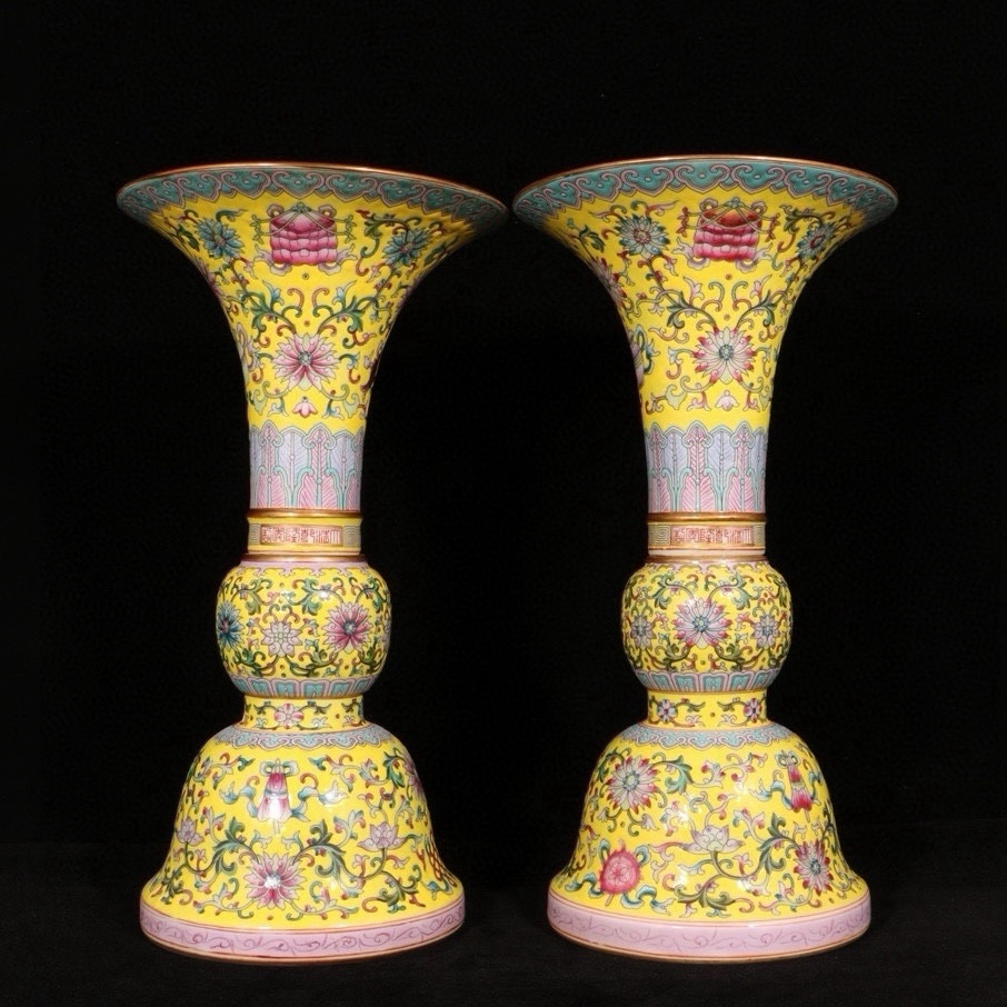> 清時代 乾隆年製 エナメル彩 金八宝花卉紋 様マンボウ 陶磁器 中国美術 唐物 古美術 置物 高さ30 cm 直径17 cm 820