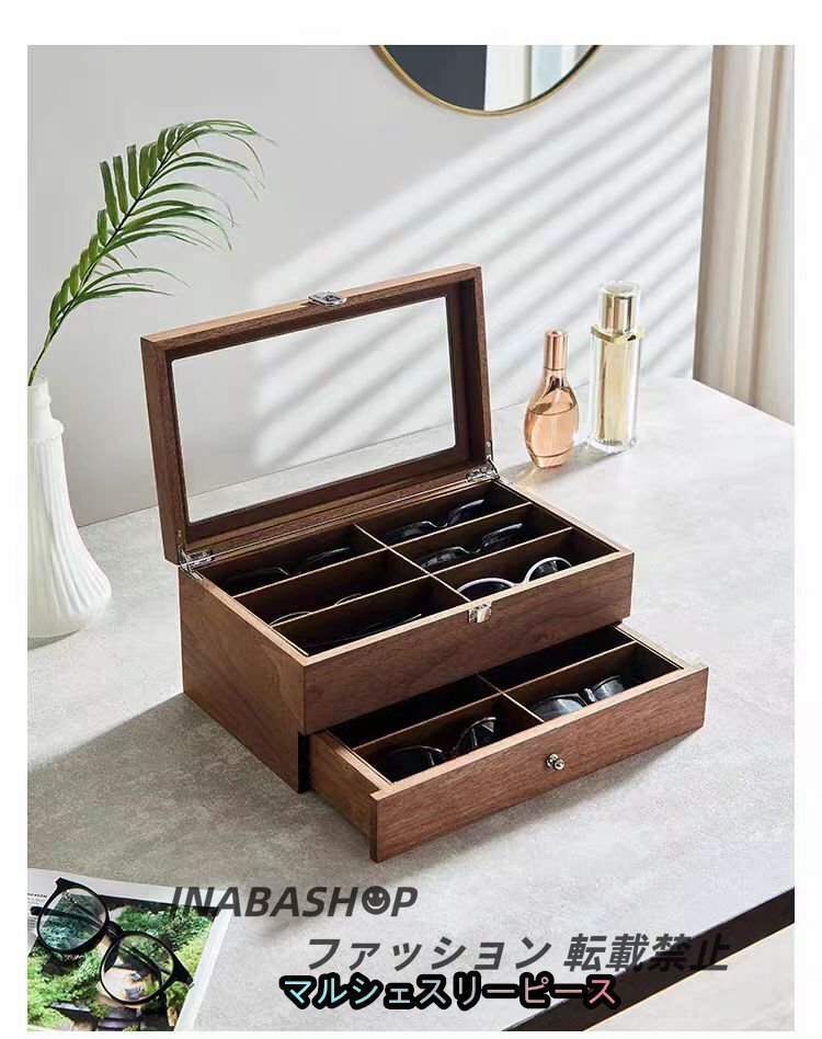 - サングラス収納ケース メガネ収納ボックス コレクションケース ジュエリー収納 小物アクセサリ収納整理 眼鏡ケース 2段式 12本用