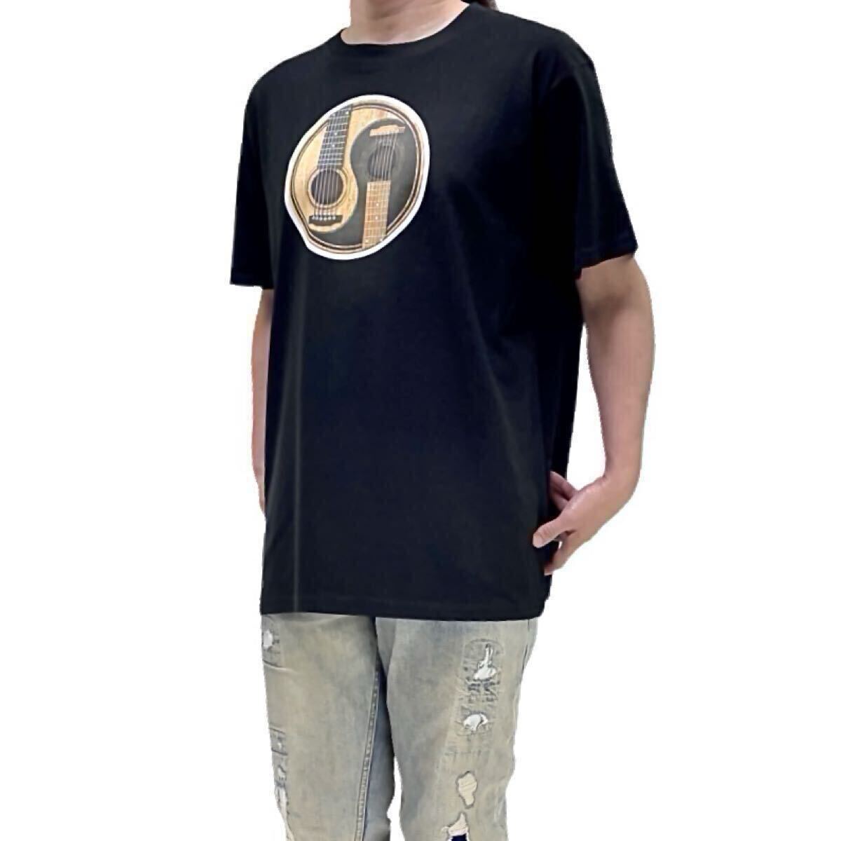 - 新品 アコースティックギター クラシック アコギ サウンドホール 木目ウッド調 陰陽勾玉巴紋 太極図 ビッグTシャツ オーバーサイズ XXL(3L)