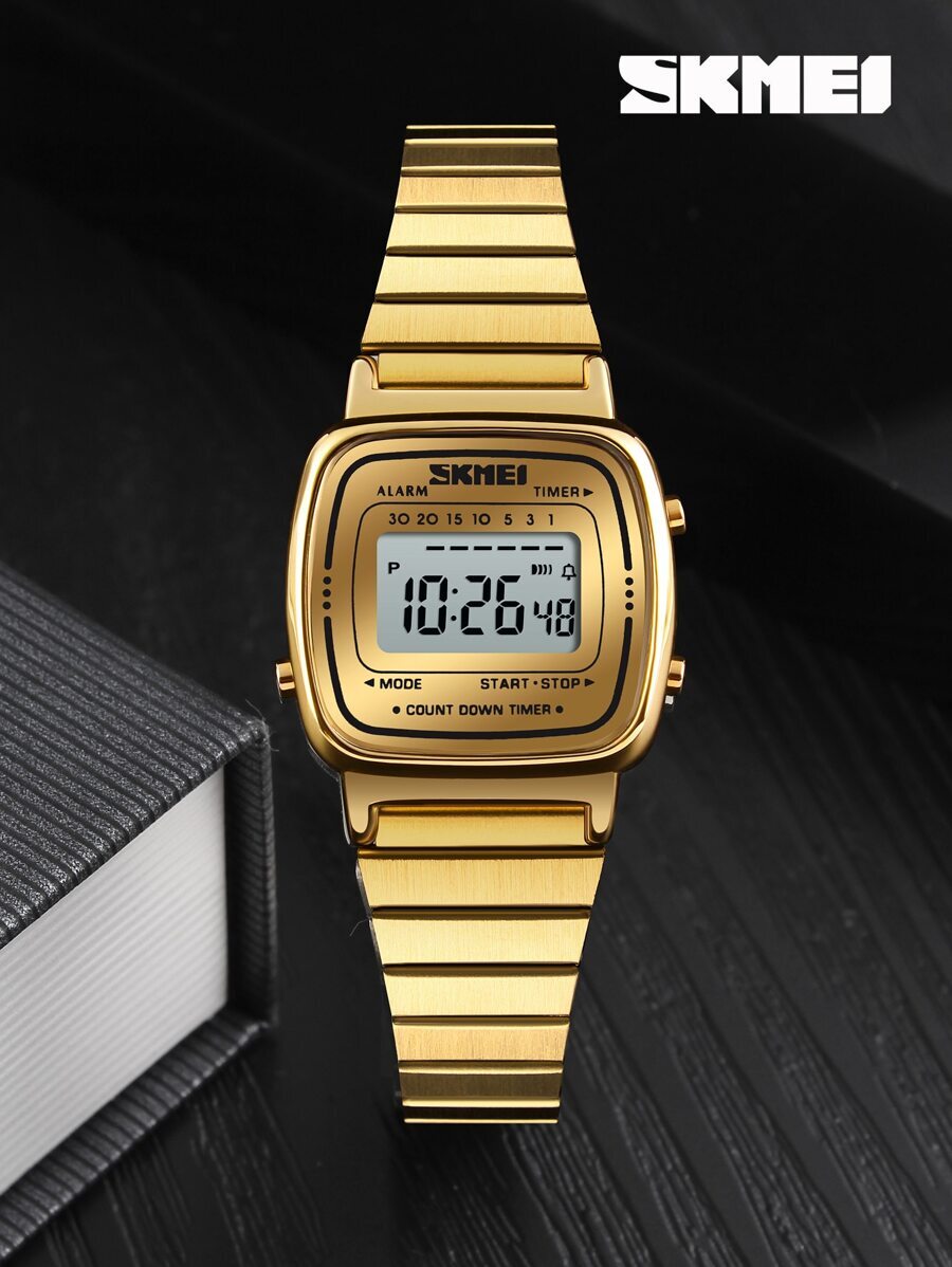 - 腕時計 レディース デジタル 1個 女性 ゴールド ステンレススチール ストラップ ファッショナブル カレンダー アラーム 防水