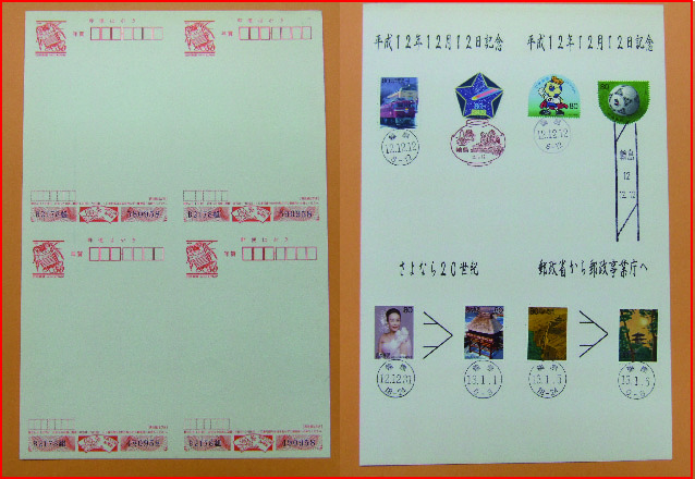 - 平成13年年賀はがき 4面 輪島市スタンプ 12年12月12日 さよなら20世紀 郵政省から郵政事業庁へ