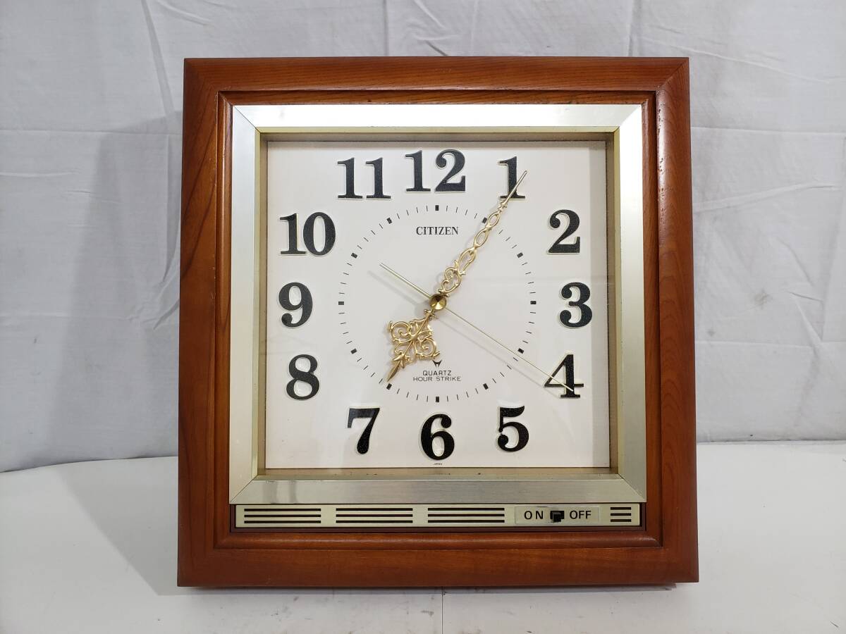 - 【USED品】CITIZEN シチズン HOUR STRIKE クォーツ壁掛け時計/インテリア/木枠/約36.5×35.5cm/厚さ約8cm/リズム時計工業/10-RMJ64