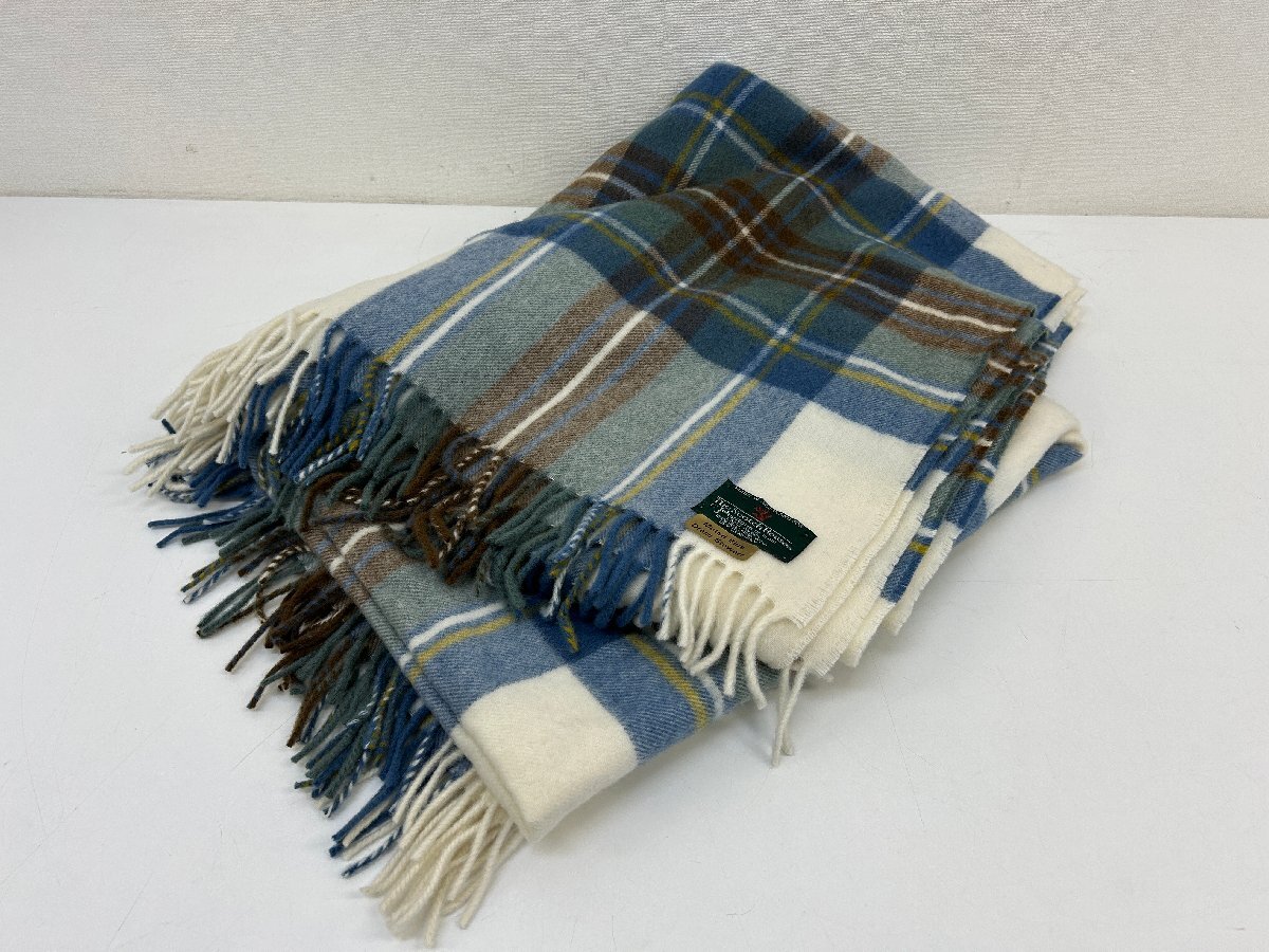 > 【未使用/保管品】The Scotch House スコッチハウス ブランケット Muted Blue Dress Stewart ウール100% 大判 ストール 膝掛け