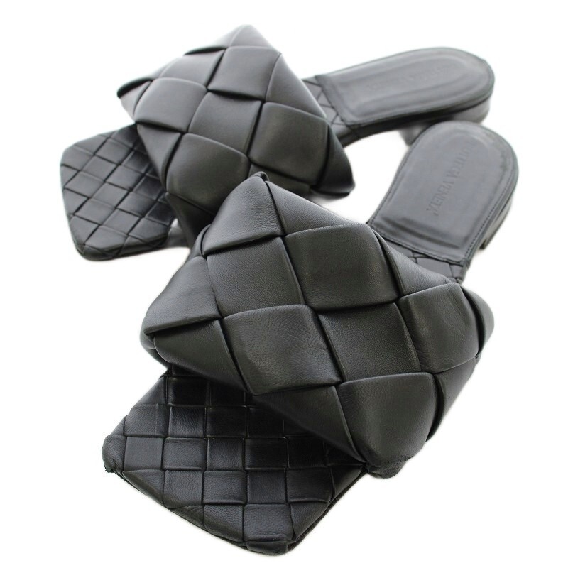 > ボッテガヴェネタ BOTTEGA リド Lido イントレチャート ミュール フラット サンダル レザー 38 黒 ブラック