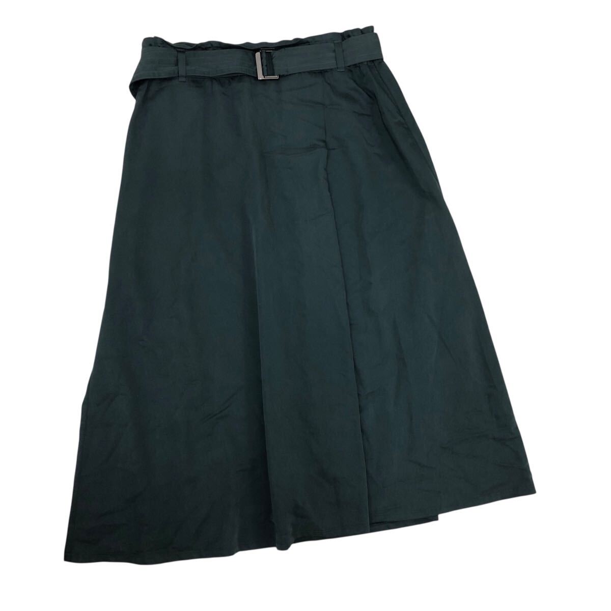 > 8Nm317-24 大きいサイズ EVEX by KRIZIA エヴェックス バイ クリツィア スカート ボトムス ミモレ丈 ベルト付き グリーン系 レディース 44