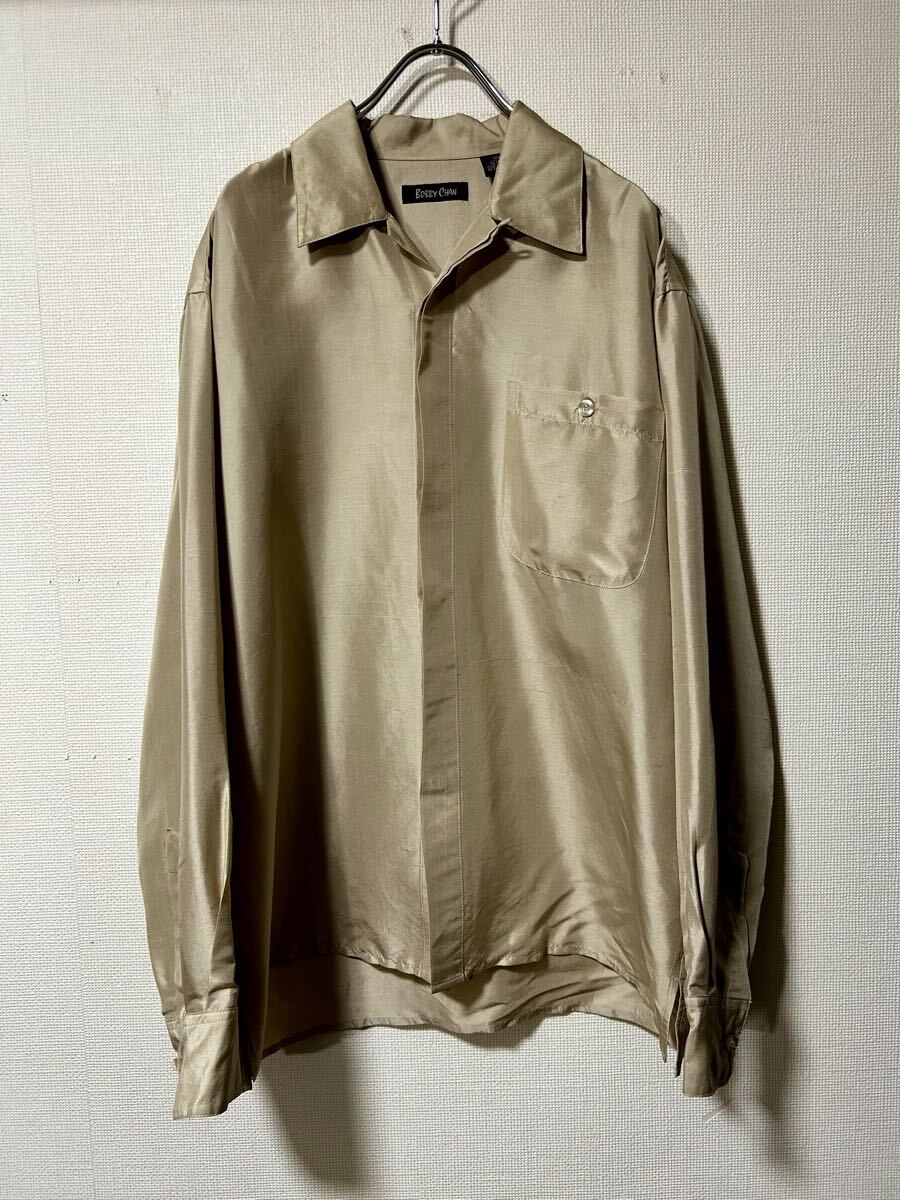 - 90s オールド シルク 開襟シャツ オープンカラー /ビンテージ ボックスシルエット