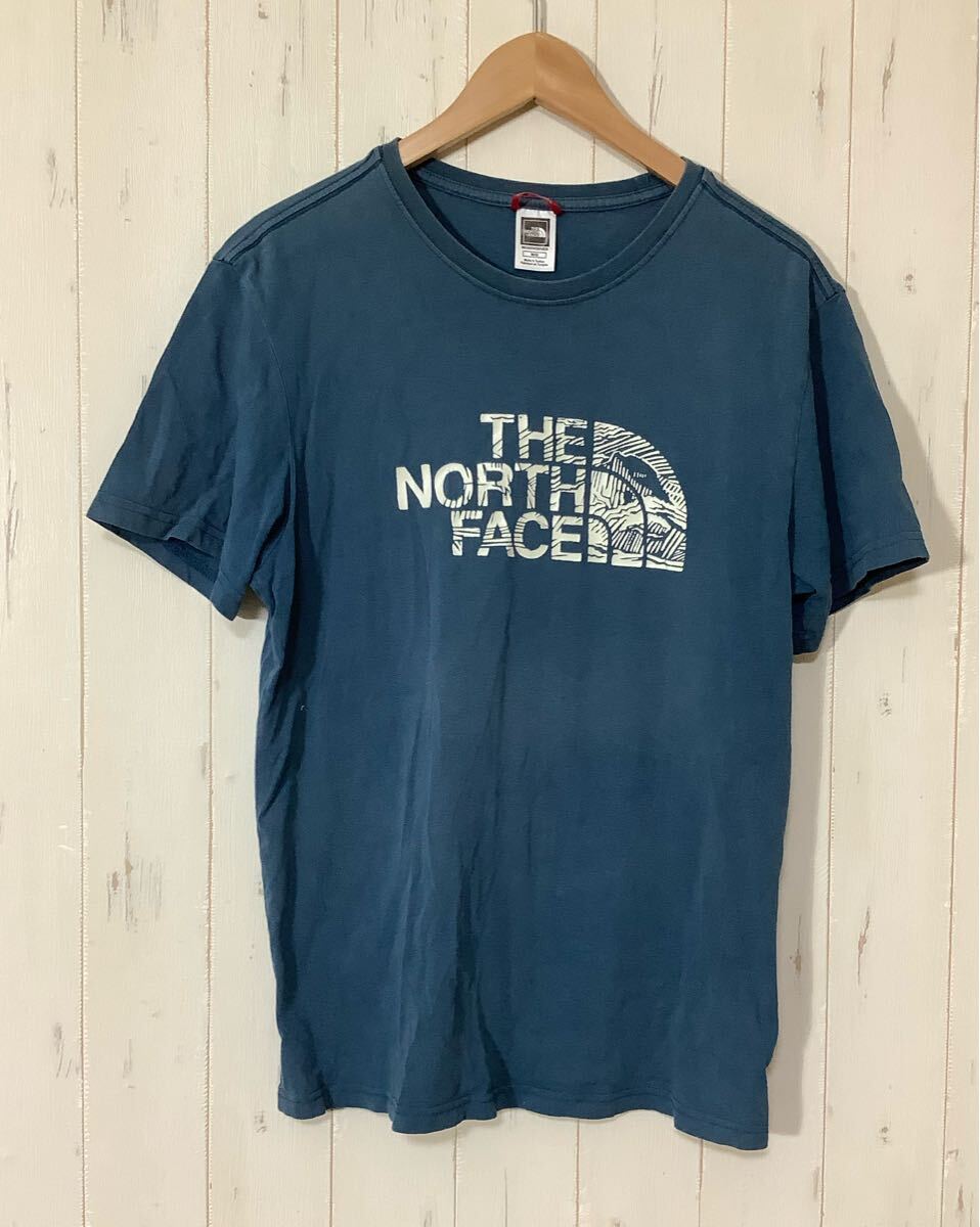 > よ1686 THE NORTH FACE ノースフェイス 半袖Tシャツ M エメラルドブルー系 ビッグロゴプリント