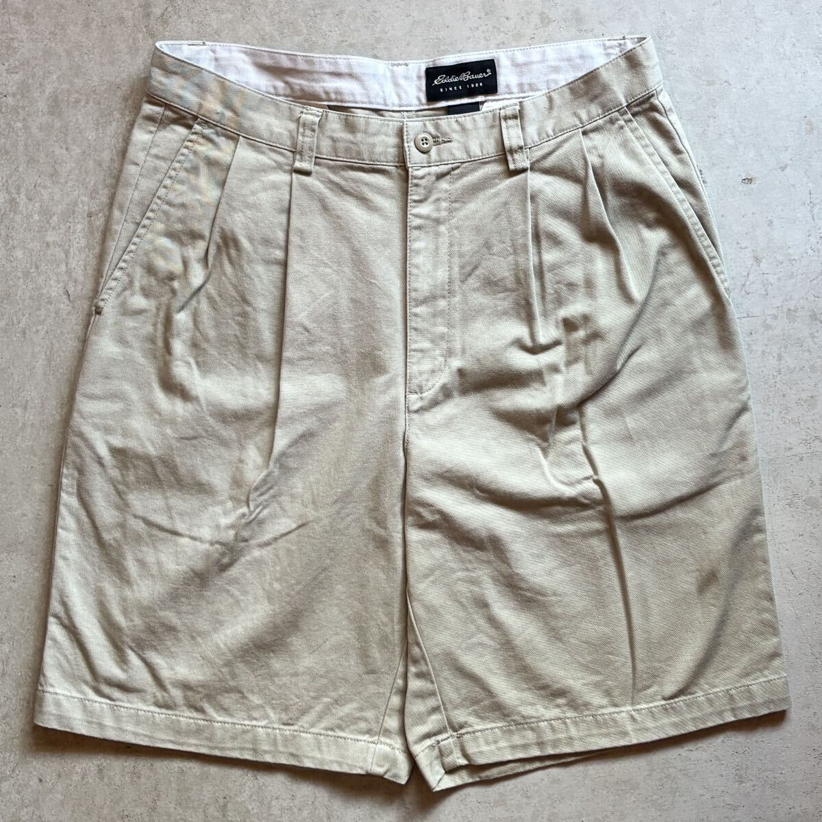 - 【90s】Eddie Bauer エディーバウアー コットン チノショーツ ハーフパンツ 短パン ツータック メンズ W32 ベージュ アウトドア vintage