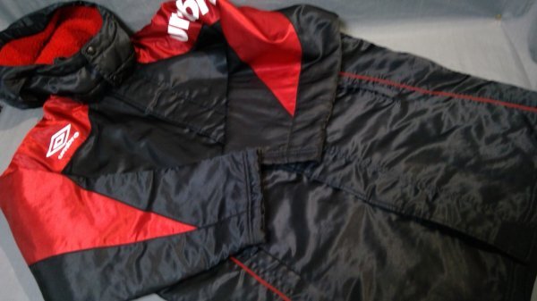 > ≪umbro≫ウインドブレーカー 160 83x56 ブラックxレッド 裏ボア フード取り外し アンブロ (梱100)272050100a7q852