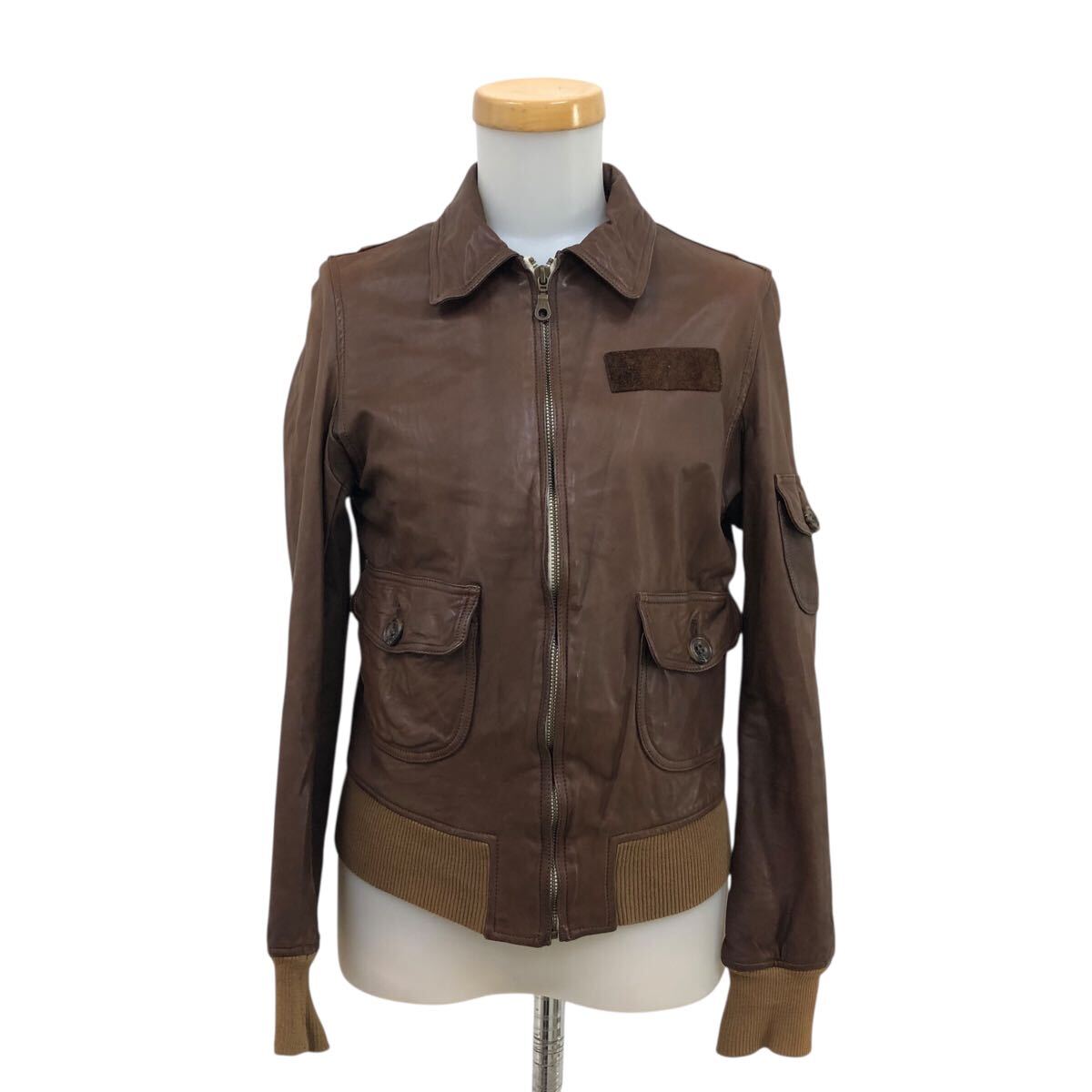 > 8m644-17 sisii シシ 本革 レザー ジップアップ ジャケット ライダース 上着 羽織り アウター 皮革 ブラウン 茶 レディース XS 日本製
