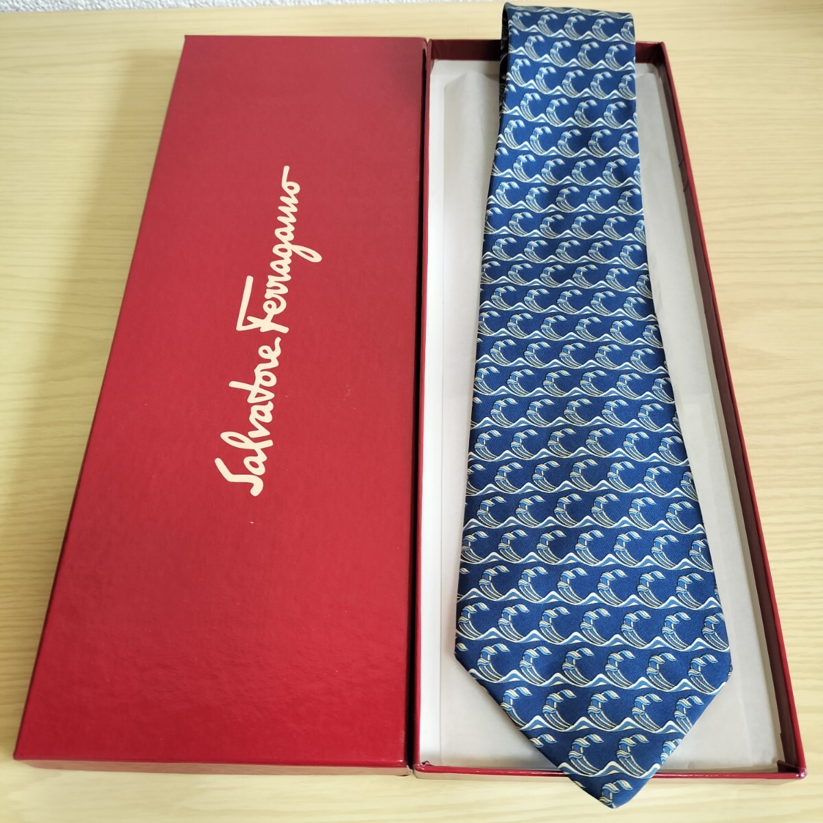 - Salvatore Ferragamo(サルヴァトーレフェラガモ)青高波模様ネクタイ