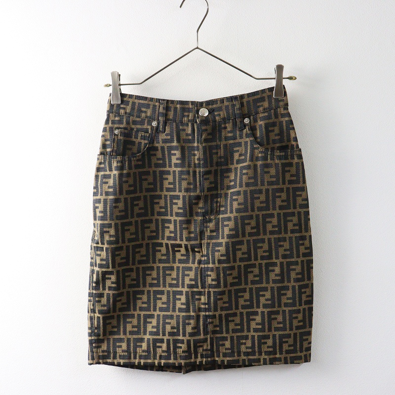 > VINTAGE FENDI フェンディ ズッカ柄 ジャガードタイトスカート I42 ベージュ ブラウン//イタリア製 ロゴ ボトムス【2400014581386】