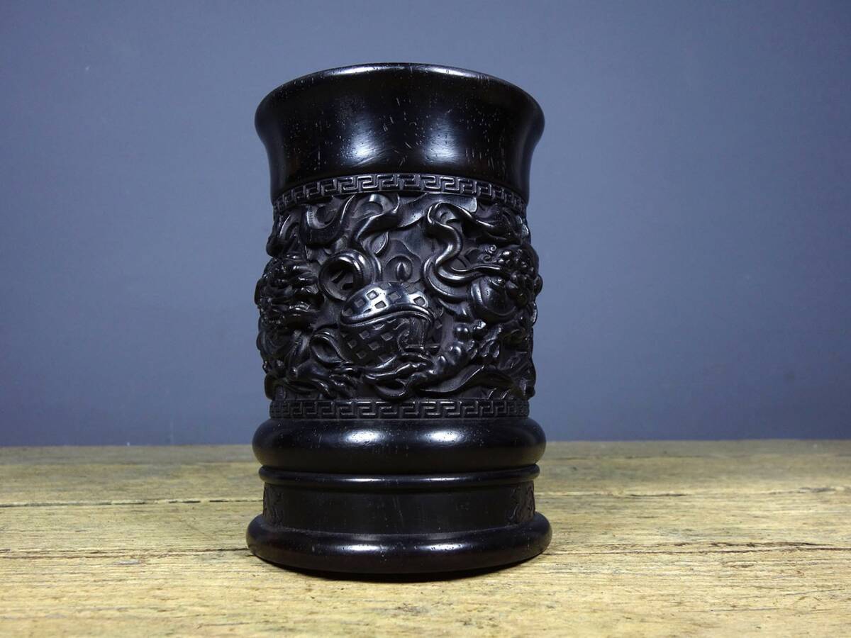 - 『館蔵珍品 血檀木製 細密彫 事事如意紋 筆筒 文房具 書道品』稀少珍蔵品 古賞物 貴重物品 収蔵品 中国古美術 時代物 古董品