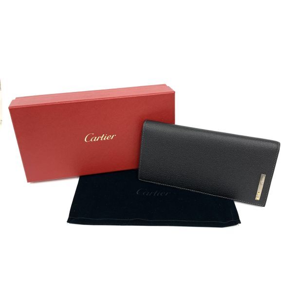 - D0798 新品未使用!格安! Carter カルティエ サントス 二つ折り 長財布 レザー ブラック