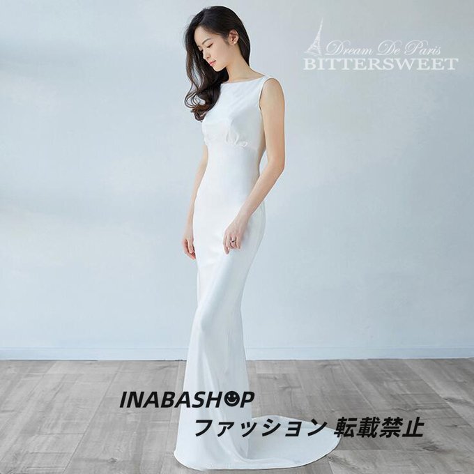 > ウエディング ドレス マーメイド ウェディングドレス ノースリーブ トレーンドレス マーメイドドレス 白 花嫁ドレス 二次会ドレス 結婚式