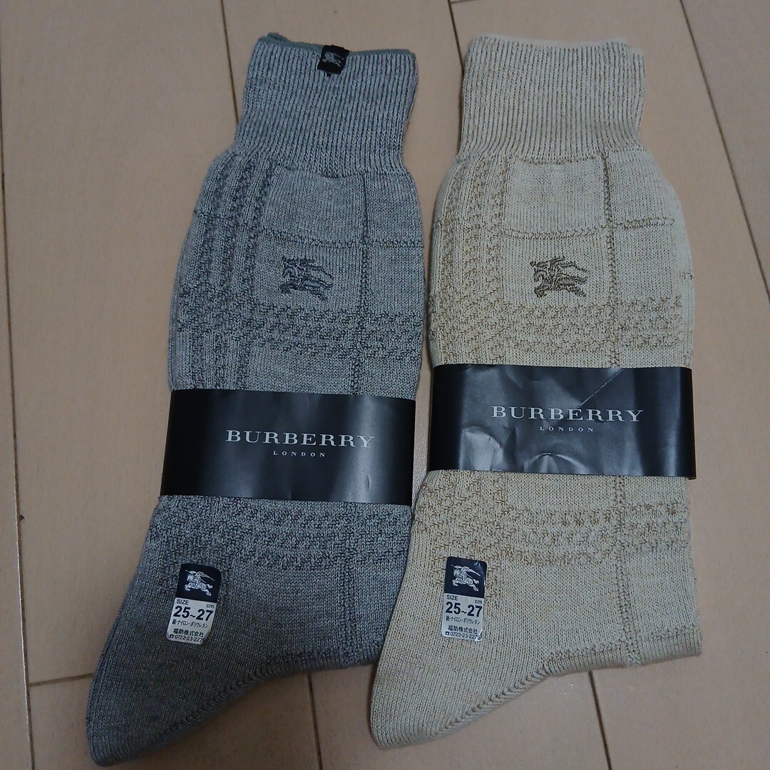 - バーバリー 紳士靴下 ソックス 織り込みチェック ロゴ刺繍 25~27cm