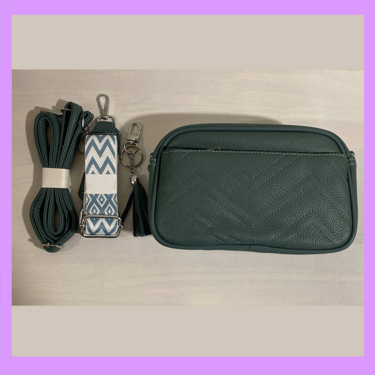 - ◆ショルダーバッグ斜めがけミントグリーン本革小さめストラップ2本韓国