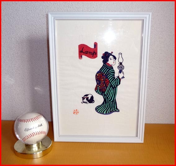- ◆【模写】◆川上澄生◆『 ランプと女と猫 』◆国際ロータリー第2550地区・年次大会記念品◆