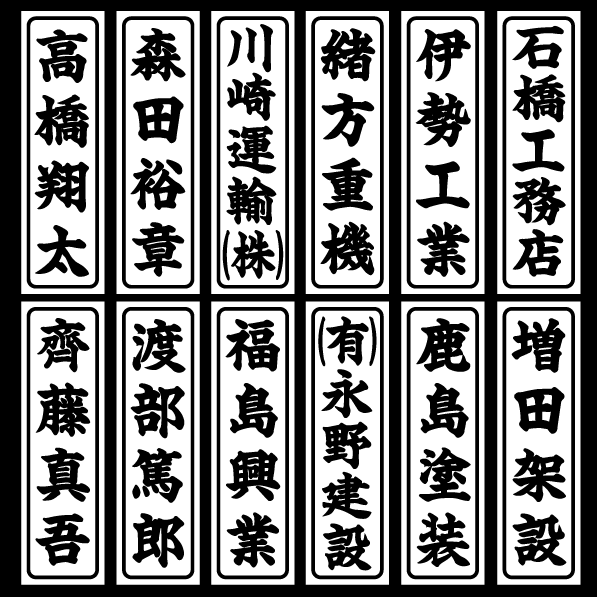 - お名前・社名ステッカー タテ 10センチ a 白・黒 6枚組