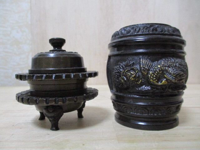 - X384-161W 仏具 火舎香炉 マッチ消し 刻銘有(画像9参照) 中古 マッチ消し:高さ約7cm (X4-紙箱)