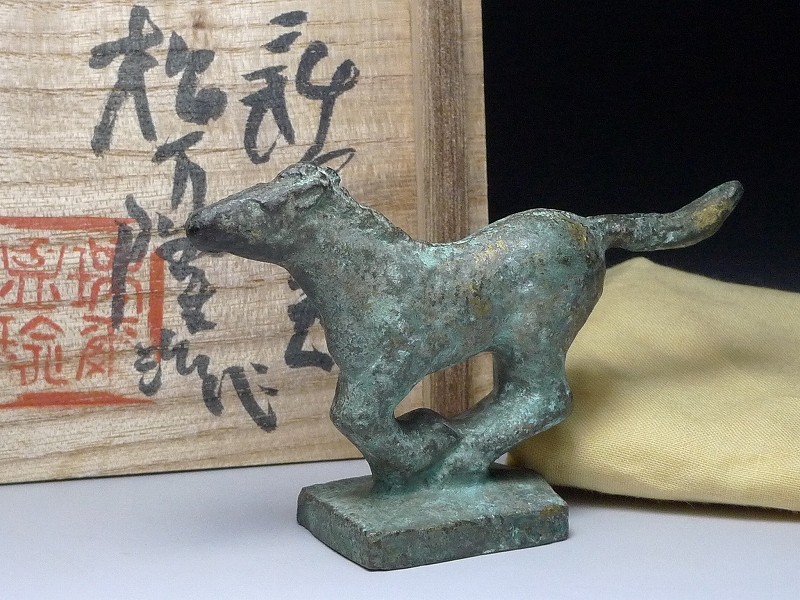 > 60HT121★松下隆治造 銅製 干支 午 馬 ウマ 置物 文鎮 重量186g 共箱付 縁起物 彫金 銅器 金属製 金工細工
