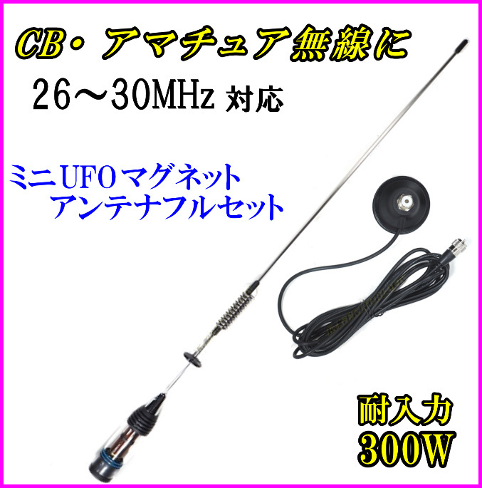 > コイル部分はスケルトン♪26MHz~30MHz対応 CB アマチュア無線♪ 耐入力300W ミニUFOマグネットアンテナ フルセット/ 車載型に 過激飛びMAX