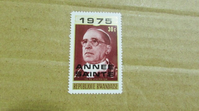 - 22 著名人 ルワンダ 聖年 - 重ね刷り;教皇ピウス12世(1939-1958) 1種完 1975-06-23