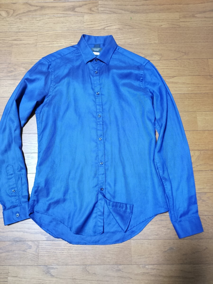 - ZARAMAN ザラマン 長袖シャツ コットンシャツ メンズ サイズM ネイビー スリムフィット ワイシャツ ドレスシャツ