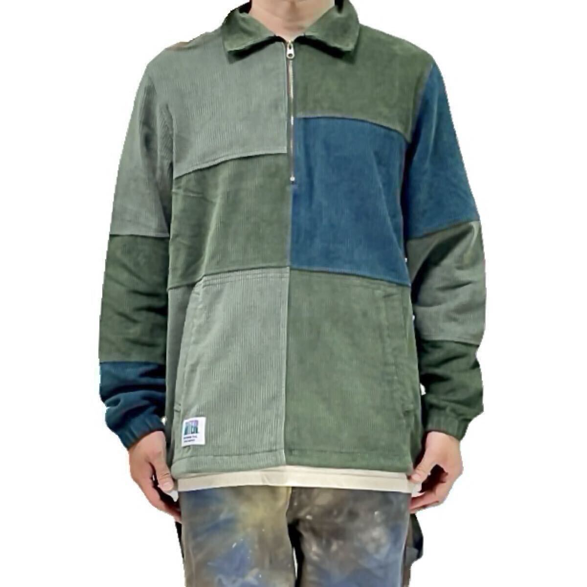 - 新品 Butter Goods バターグッズ アシンメトリー クレイジー パネル コーデュロイ ハーフジップ プルオーバー シャツ ジャケット カーキ M