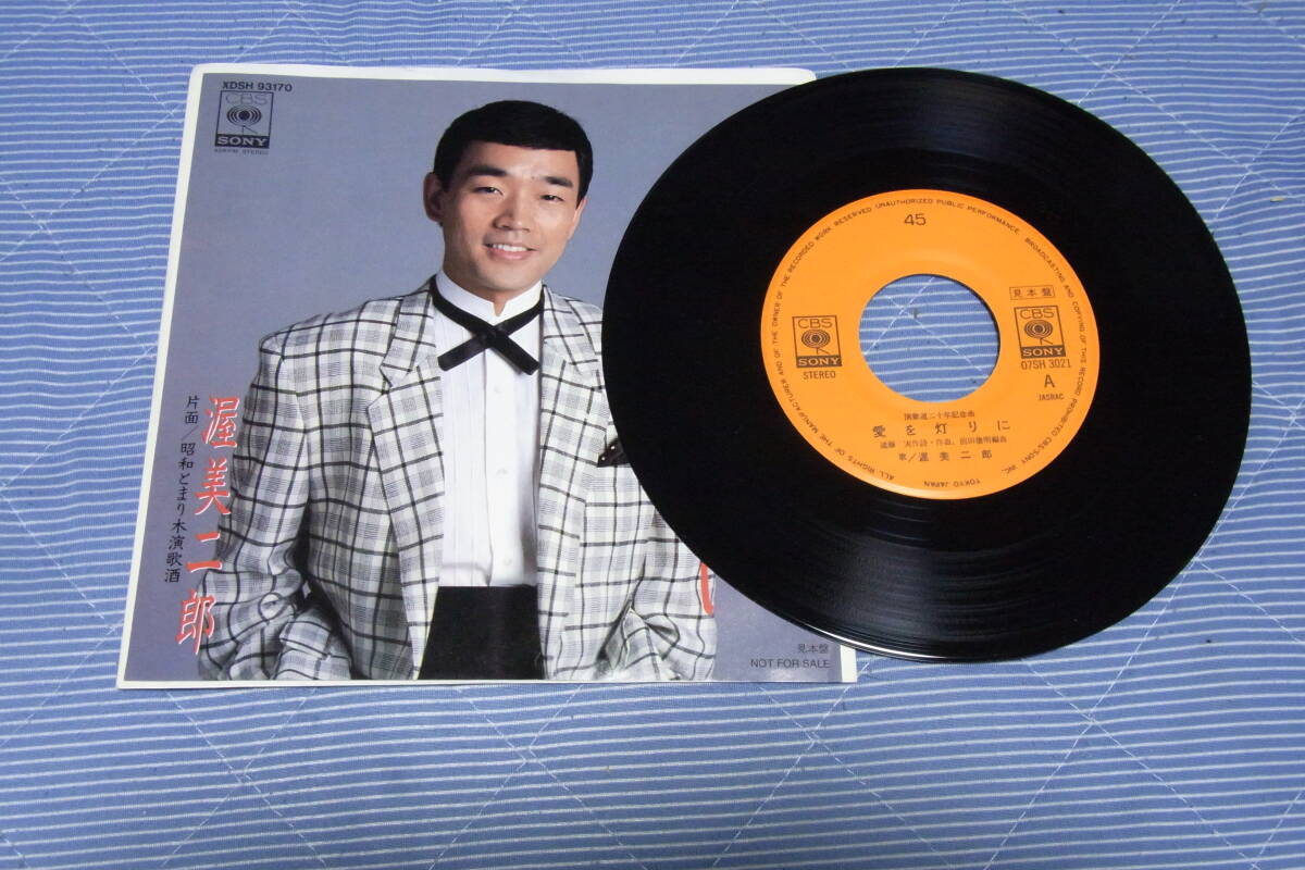 > 極美品・レア物サンプル見本盤125: 渥美二郎 愛を灯りに 演歌道20周年記念曲 シングルレコード