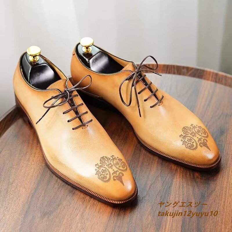 - 定価9万◆極美品 ビジネスシューズ 本革 レザーシューズ メンズ 職人手作り 高級牛革 新品 紳士靴 革靴 宴会 フォーマル ブラウン 27.5cm