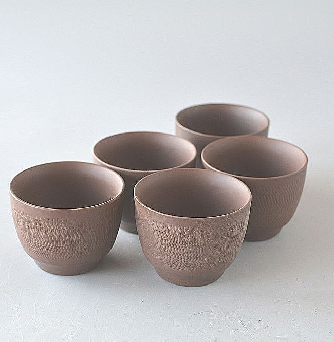 - 湯飲み 5個セット 櫛目 民芸 小湯飲み ぐい飲み 酒器 湯呑み 中国茶 茶杯