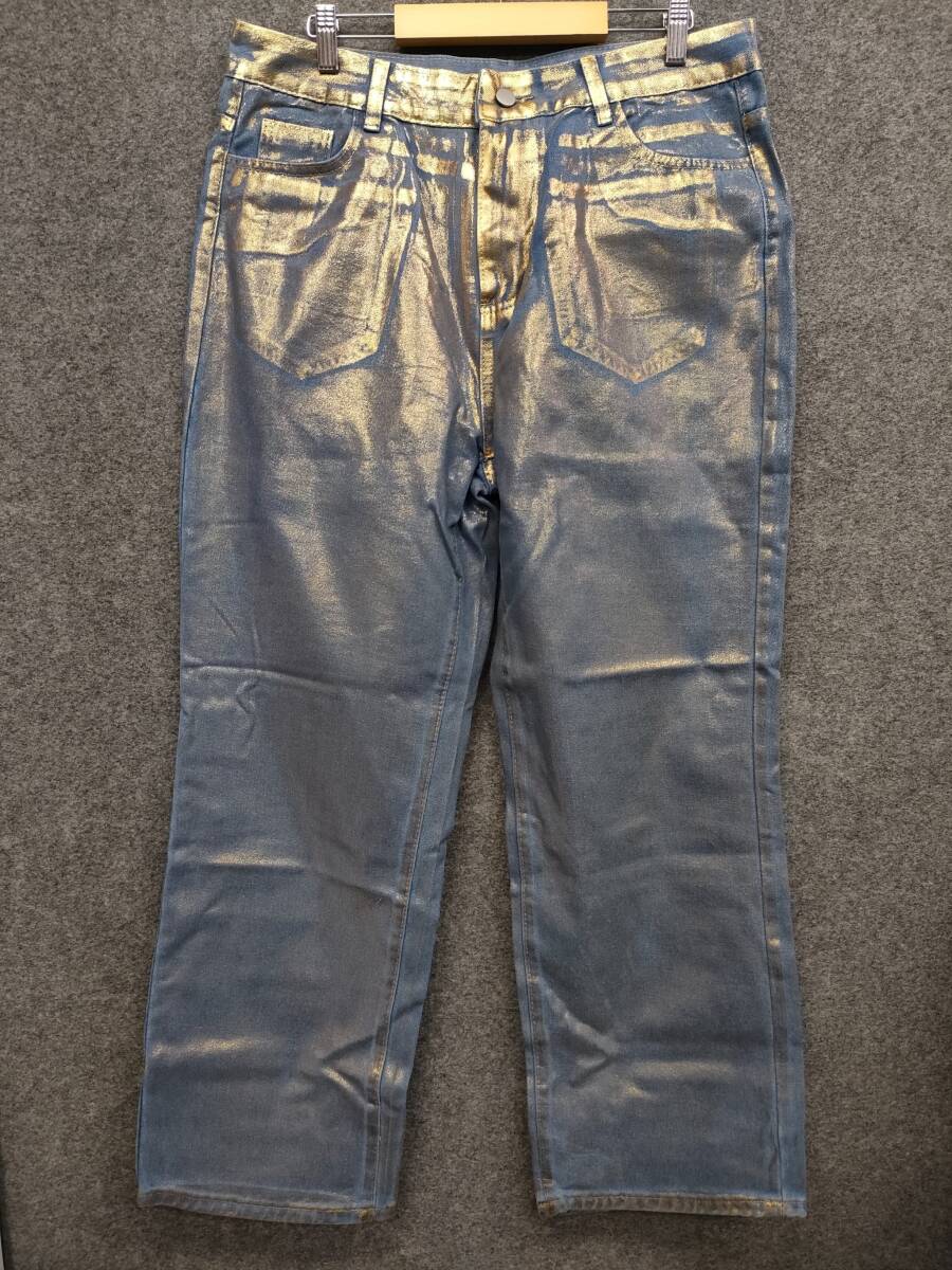 - ★ブランド不明 ストレートデニム ジーンズ 金 ゴールド サイズXL