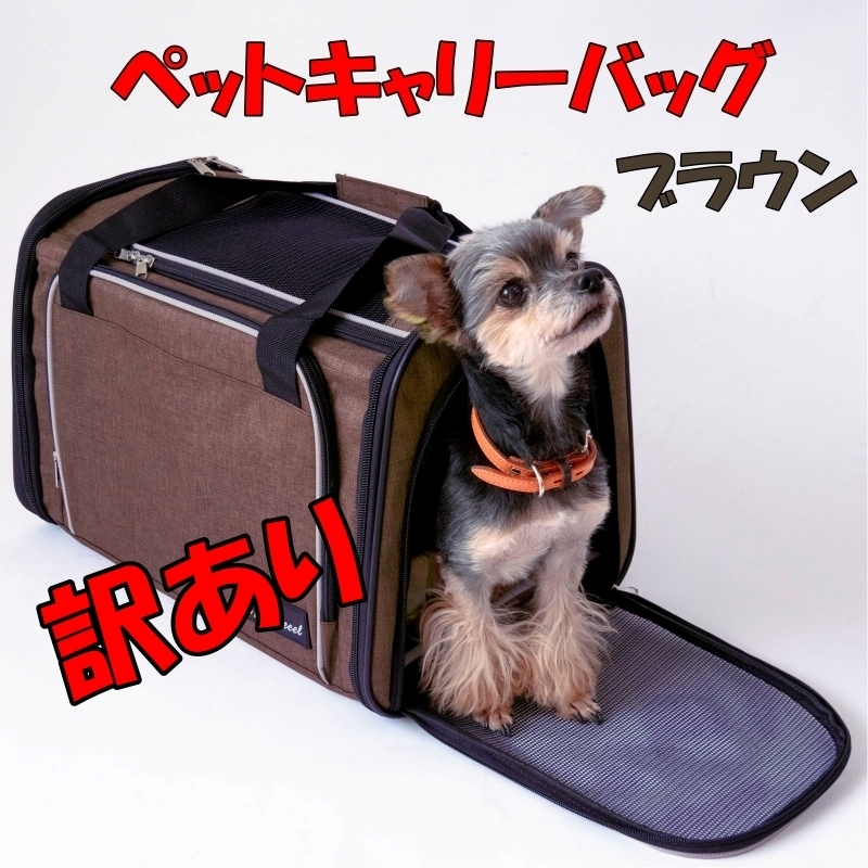 - 訳あり ペットキャリーバッグ 犬 猫 ブラウン 折り畳み 夏冬対応底板 ポケット