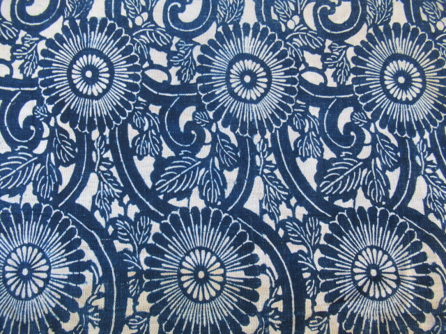 > ●明治型染:2:●『菊に唐草模様』●木綿●1m60cm×35cm●藍染●型染●送料ゆうパケット¥360-●